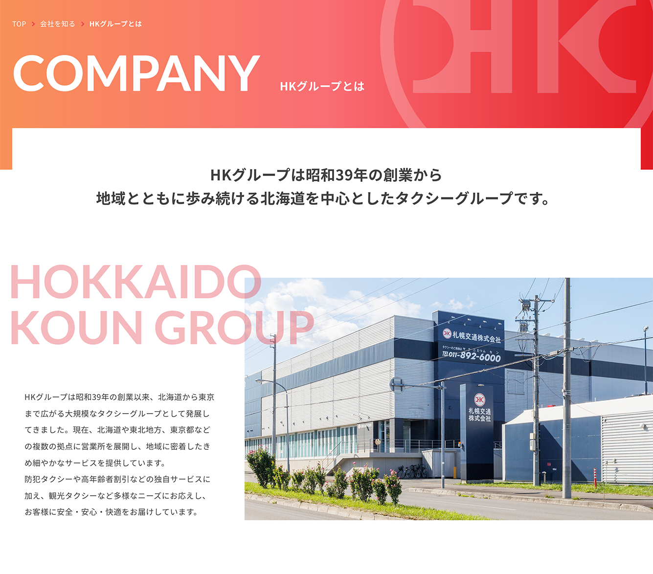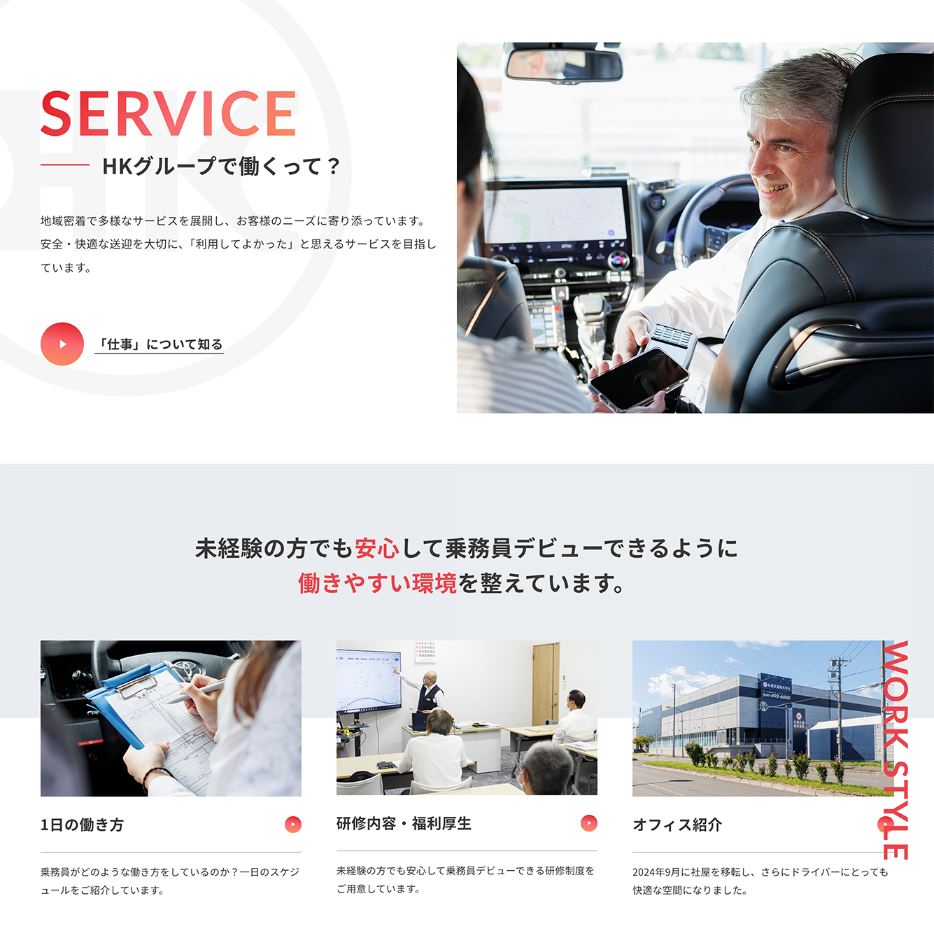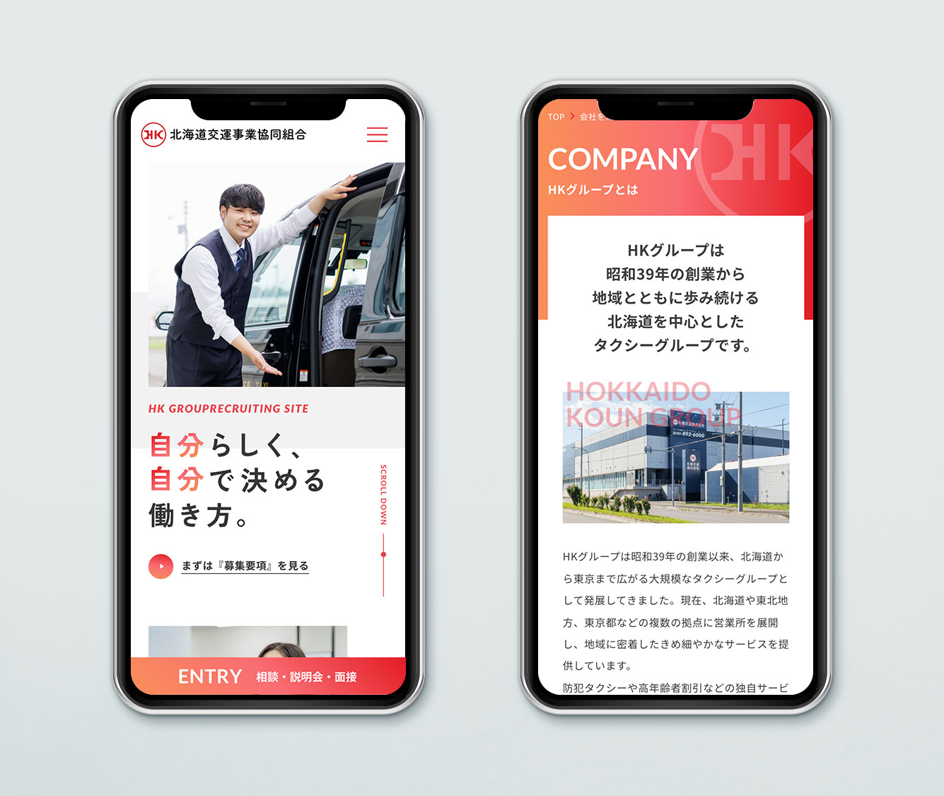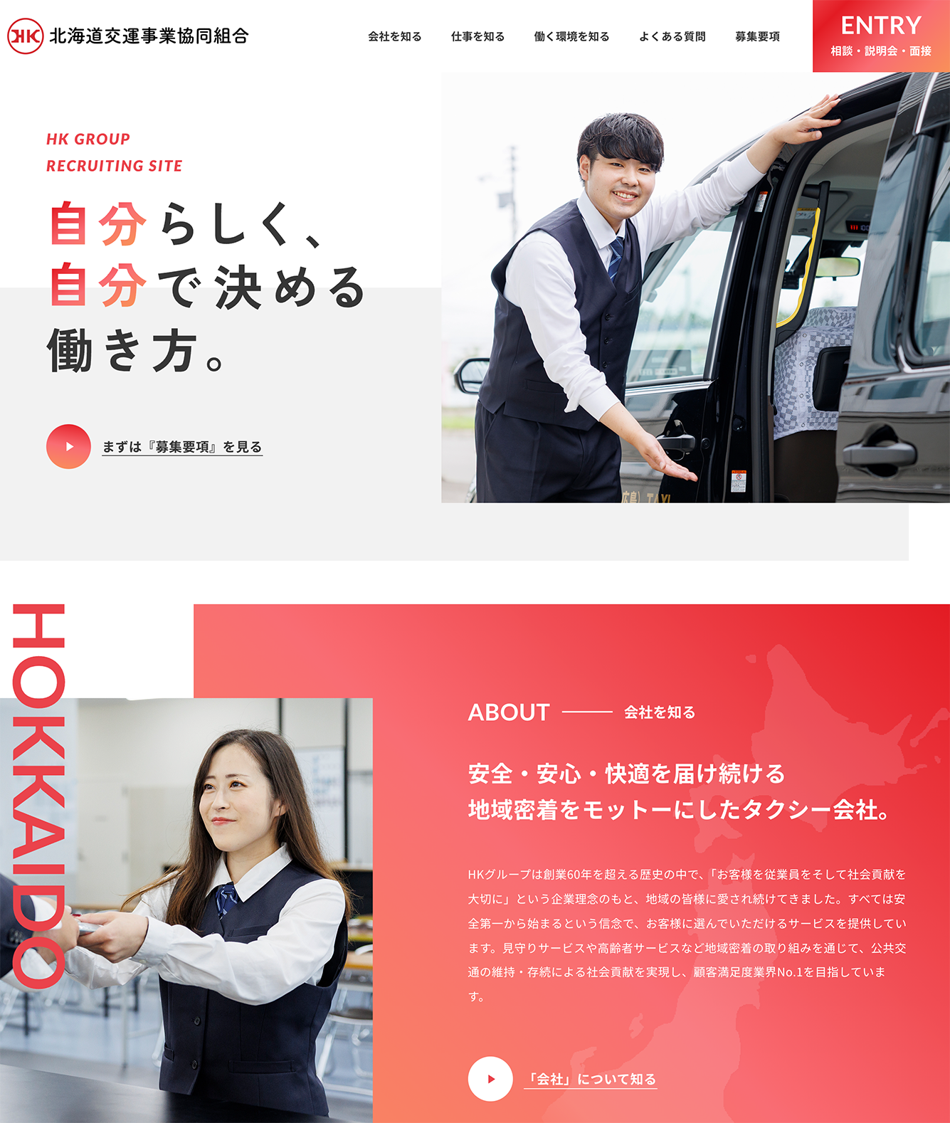 北海道交運事業協同組合(HKグループ) 採用サイト Web Client 北海道交運事業協同組合(HKグループ) 様 Role UI/UXデザイン HTMLコーディング Visit Website Scroll Down