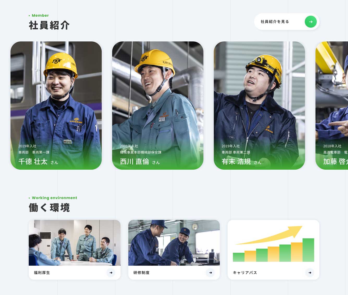 札幌交通機械株式会社 Web Client 札幌交通機械株式会社 様 フォトグラファー Green Piace Office Role UI/UXデザイン HTMLコーディング 撮影ディレクション Visit Website Scroll Down